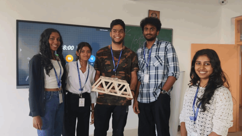 2. Teamwork Zone —This challenge focused entirely on cooperative problem-solving with effective communication, synchronization, and division of roles to complete a bridge made using only popsicle sticks, tape, and glue guns.