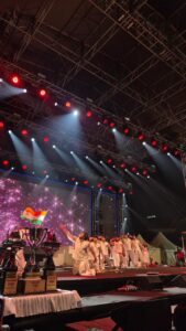 Dressed in stunning ethnic attire — from elegant sarees and salwar suits to colorful lehengas, dhotis, lungis, and kurtas — the performers turned the venue into a living canvas of India’s diversity. The flashmob began as a surprise, catching the audience off-guard with an upbeat Kannada track, followed by a powerful wave of energy with Punjabi dhol beats that had the crowd clapping in rhythm.