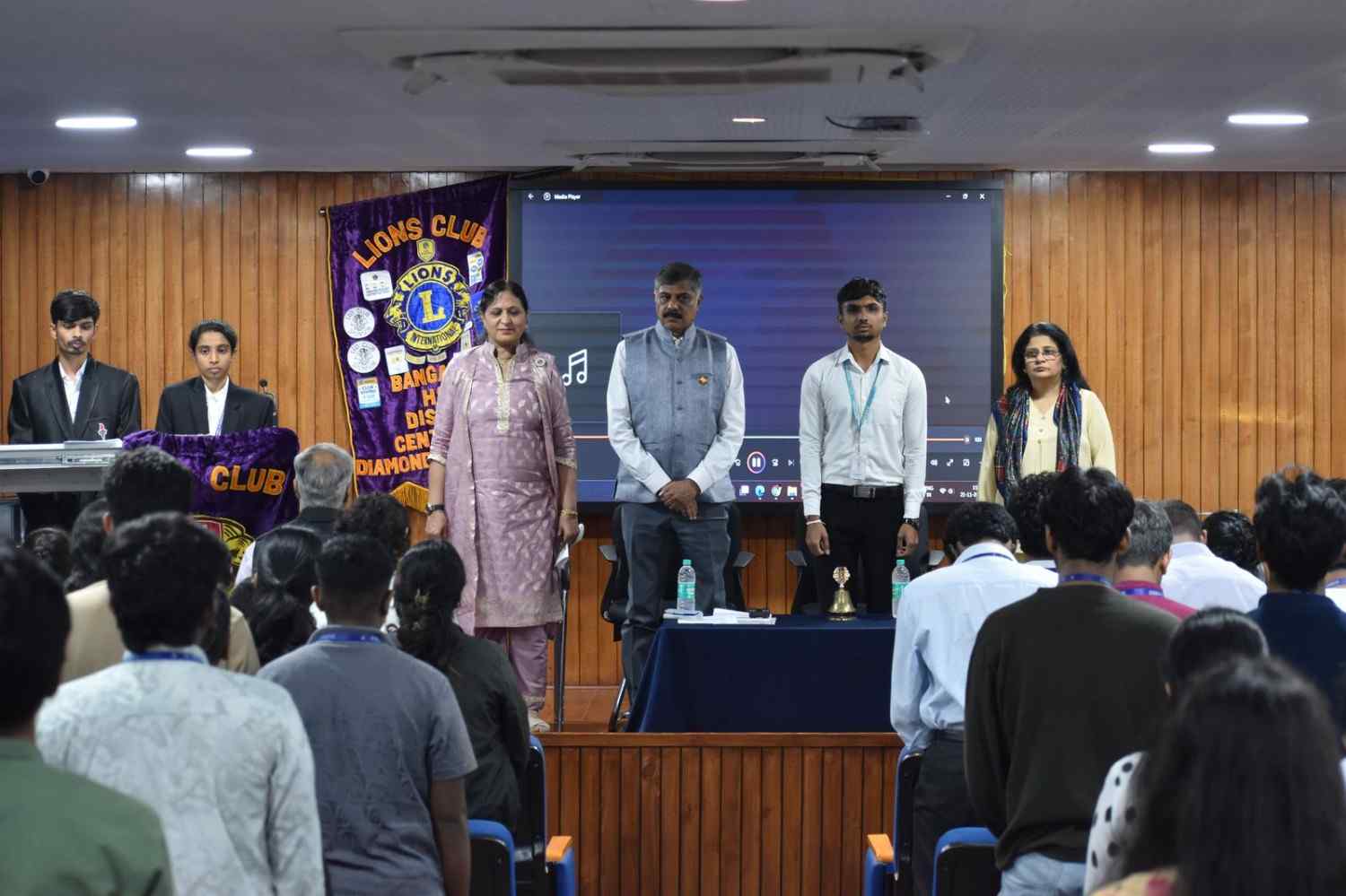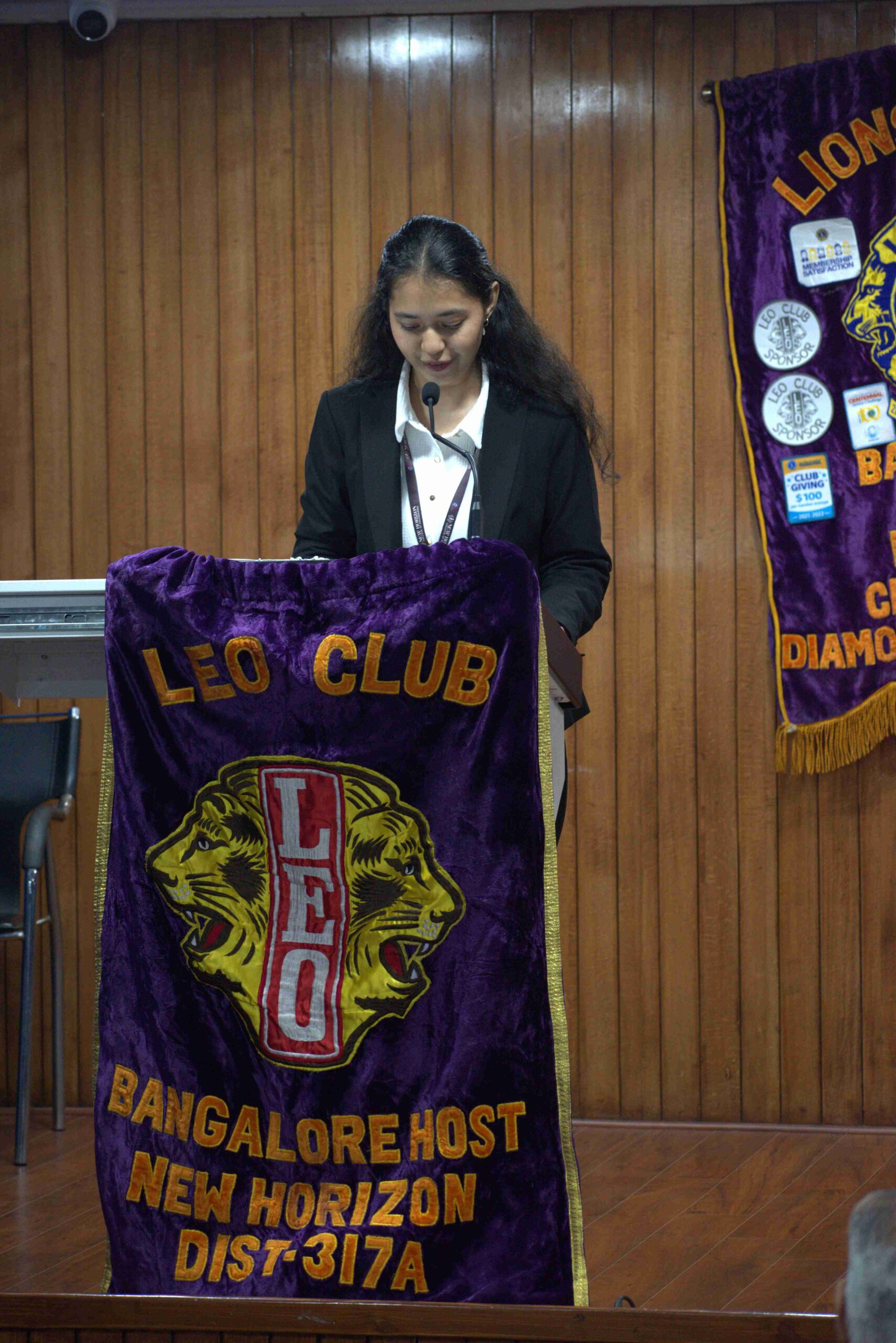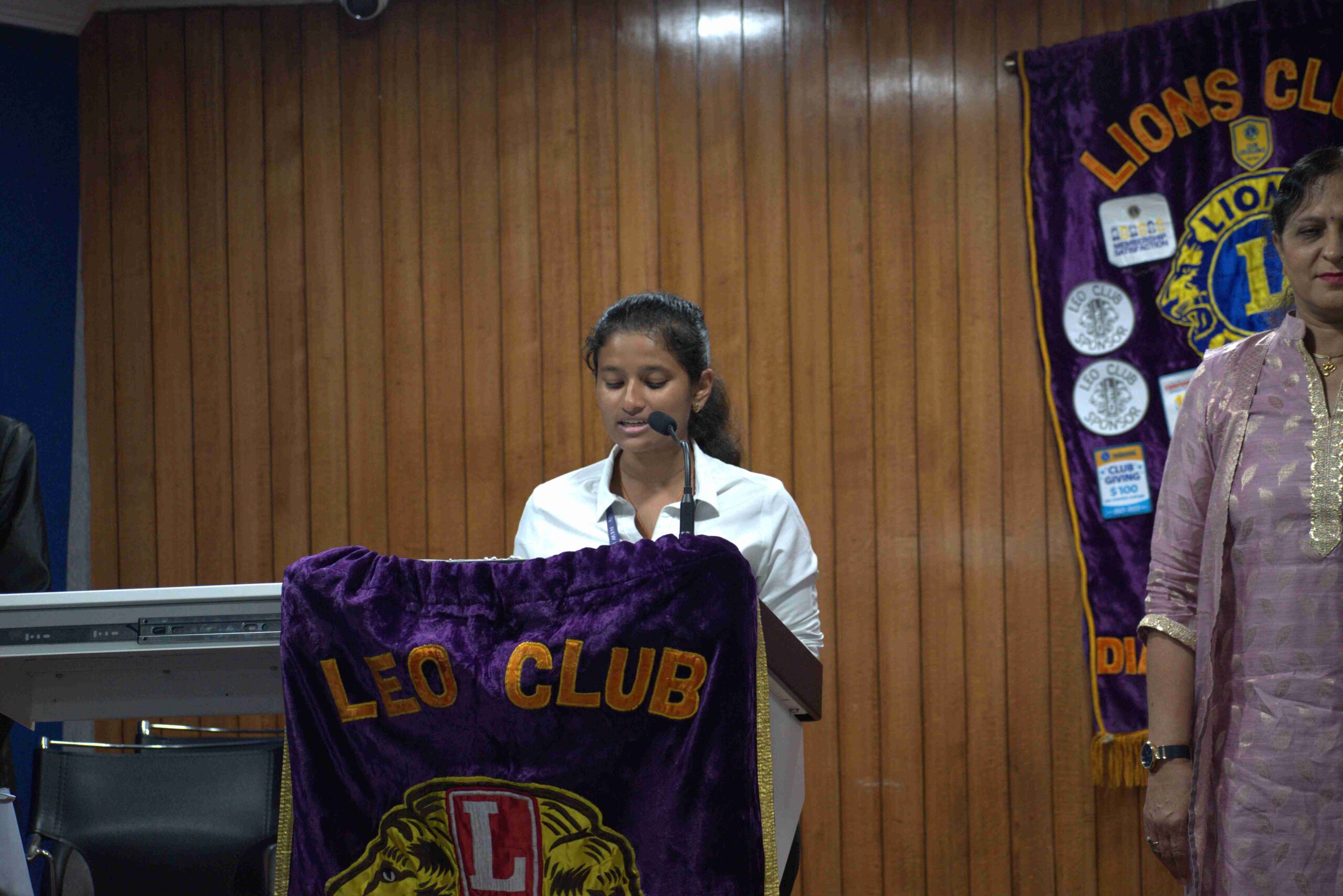 The event began with the invitation of dignitaries to the dais. The Outgoing President Leo Vishal Shetty then called the meeting formally to order. The invocation and lighting of the lamp set a respectful and hopeful tone. Members joined in with a flag salutation by Leo Srushti followed by a minute of silence dedicated to world peace.
