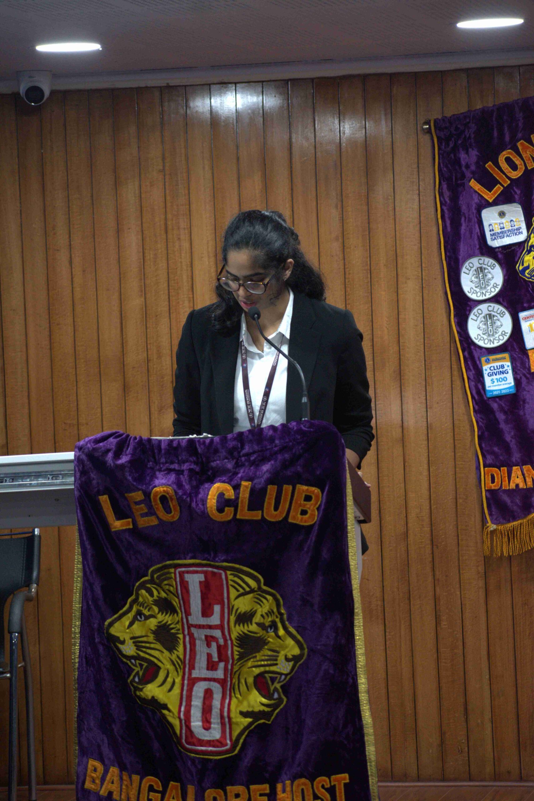 The welcome address by the Leo Advisor – Lion Neha Bathija was thoughtful and brought everyone together. It was then followed by an inspirational message from the President of LCBH – Lion Rajani Manjunath. The outgoing officers took a moment to reflect on their term as the outgoing president shared a meaningful address. The Outgoing Secretary Leo Bharathi presented the annual report, while the Outgoing Treasurer Leo Thanvith presented the financial statement for the year.